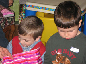 our annual book exchange with the "playgroup" was last week. the kids got to make cookies and play with their friends, as well as swap books.